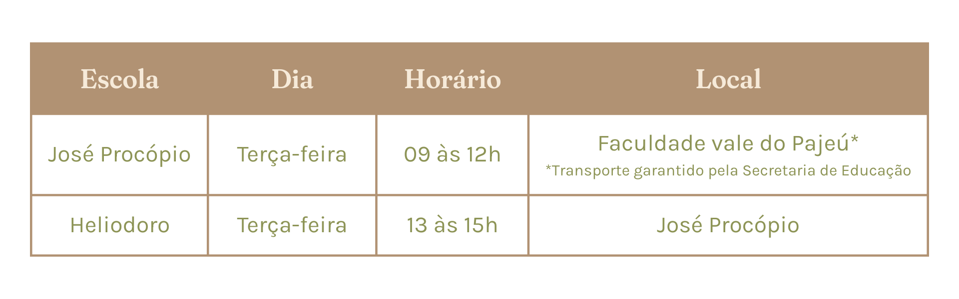 As atividades acontecem semanalmente, no contraturno escolar, todas as terças-feiras, de maio a dezembro de 2025. E o melhor: tudo gratuito, com transporte garantido pela Secretaria de Educação do Município, quando necessário.